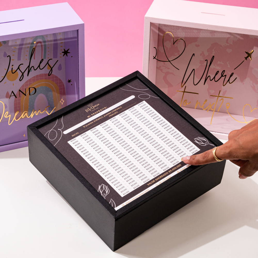 Alcanza tus sueños con nuestras alcancías de ahorro, hechas en madera y con un diseño exclusivo.