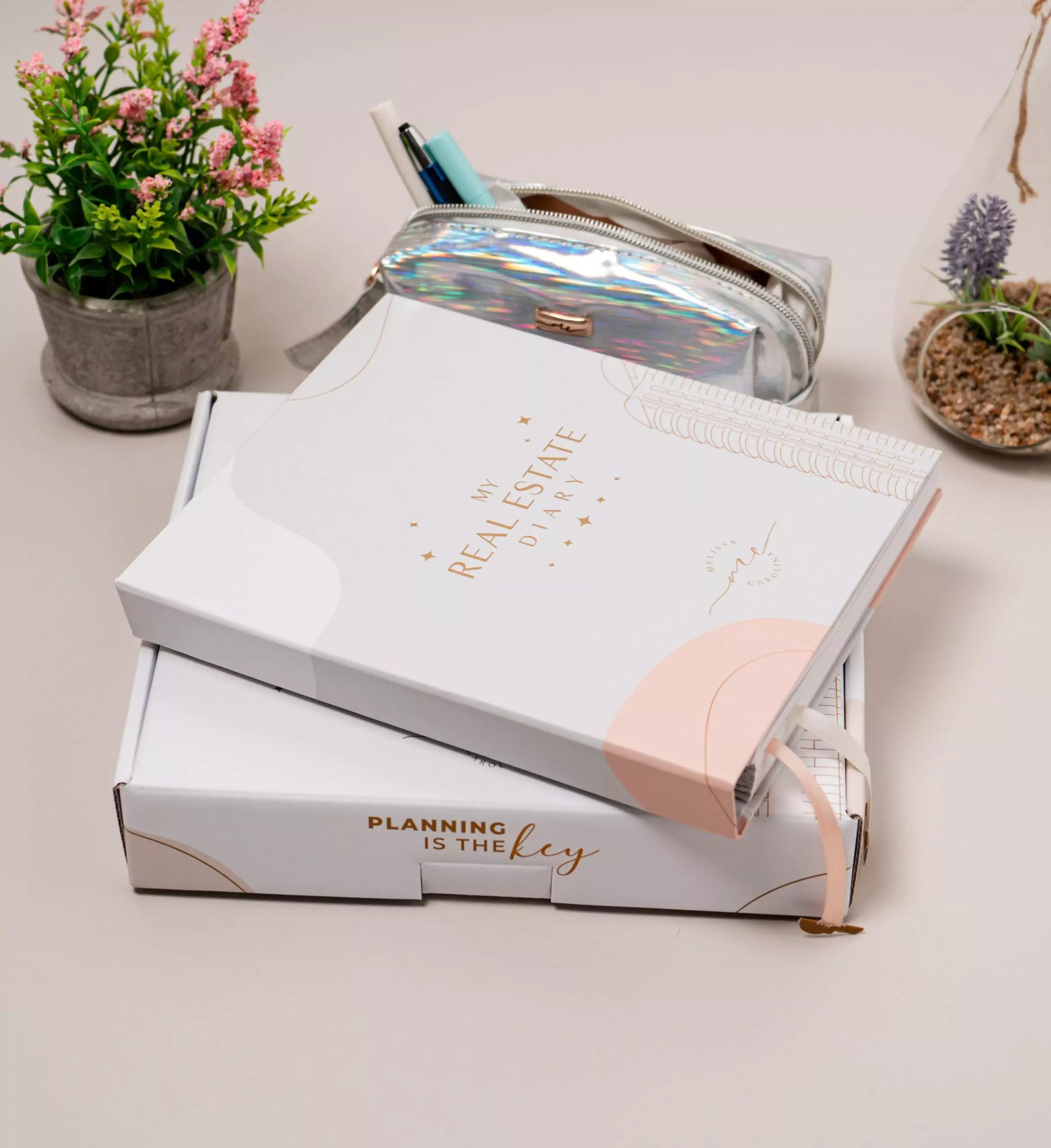 La mayoría de las agendas están hechas para todo el mundo, siempre tienen lo mismo y carecen de las herramientas que verdaderamente te ayudan a cumplir tus metas. Nuestra agenda My Real Estate Diary fue diseñada exclusivamente por profesionales en real estate. en ella podrás definir cuáles son esos objetivos comerciales y ventas que quieres conseguir en tu negocio a largo o corto plazo.